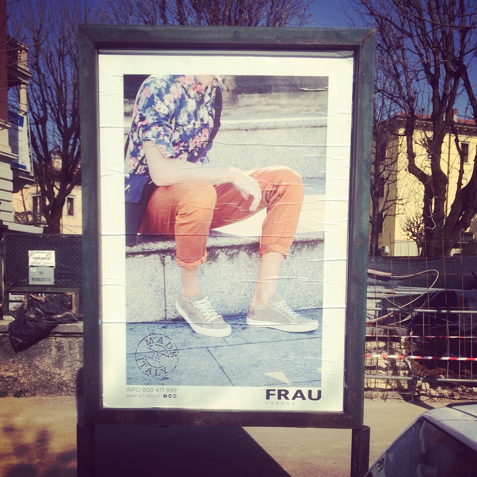 Dal 16 di Marzo che sono in affissione nel comune di Verona gli stendardi verticali e orizzontali di Geox e Frau.