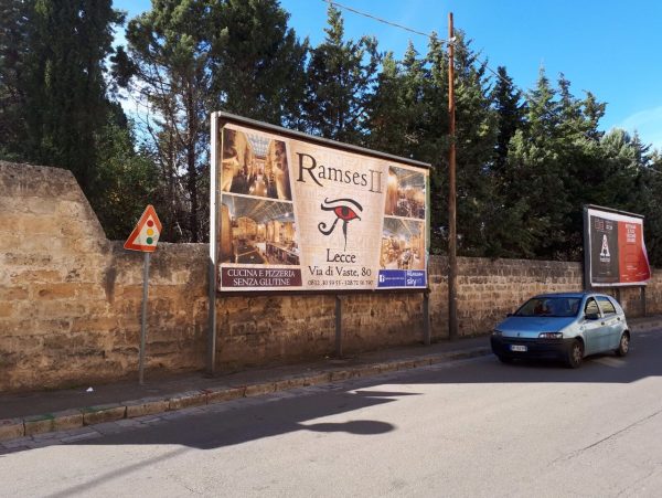 Questo impianto di affissione pubblicitaria è situato nel comune di Trepuzzi in provincia di Lecce ed ha dimensioni di mt. 6×3 per manifesti pubblicitari di grandi dimensioni.